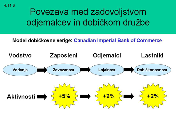 odjemalcev, zadovoljstvu in zavezanosti zaposlenih.