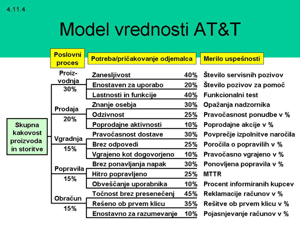 Zgornji model vrednosti so razvili pri AT&T z namenom