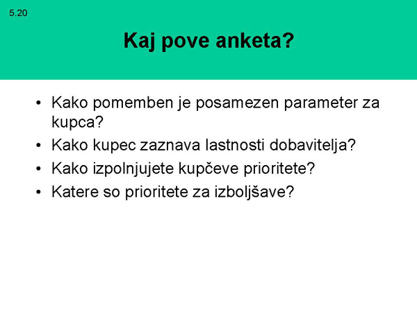 Namen anketiranja je, da zberemo podatke, ki nam bodo omogočali pridobitev informacij za izboljševanje proizvodov, storitve, procesa in sistema.