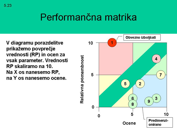 kjer je relativna pomembnost visoka in ocena nizka, je