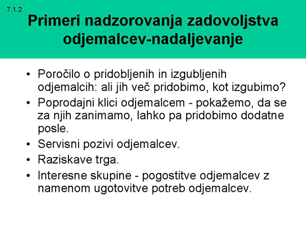 odjemalcev in vzrokih za zadovoljstvo,