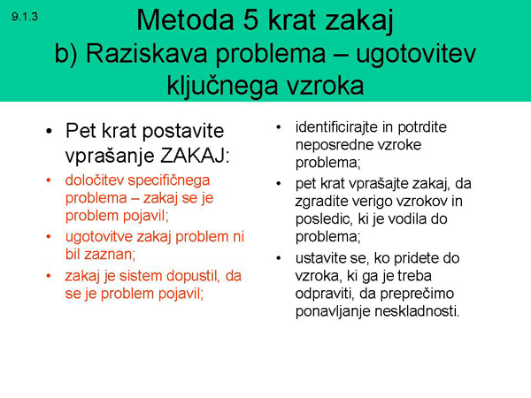 zakaj se je problem pojavil, zakaj problem ni bil zaznan