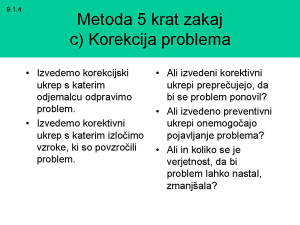 izvorni vzrok obstaja korektivni ukrep?